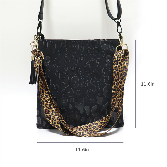 10Pcs Free Shipping Women Crossbody Purse Black Leopard Shoulder Bag with Guitar Strap