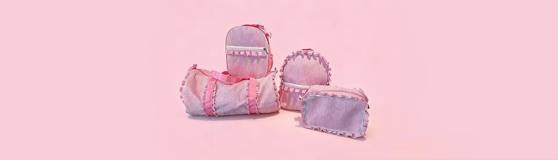 25Pcs Free Shipping Pink Seersucker Duffle Bag Small Size Kids Toddler Weekend Travel