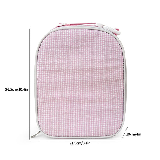 25Pcs Gingham Seersucker Cooler Bag Pink Checked Food Bag Insulated Picnic Bag