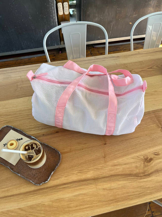 25Pcs Free Shipping Baby Pink Seersucker Duffle Bag Small Size Kids Toddler Weekend Travel Bag