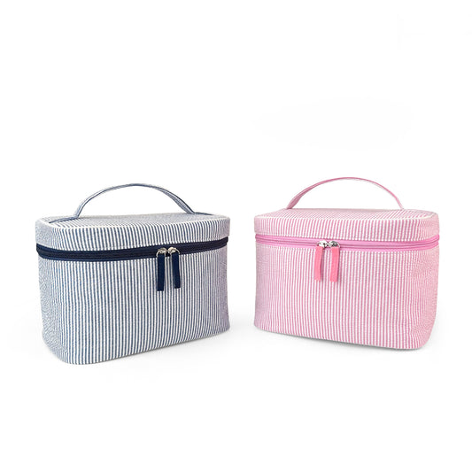 15Pcs Seersucker Handle Cosmetic Bag Bridesmaid Bags Pink Gift Organizer Bag Travel Toiletry Bag