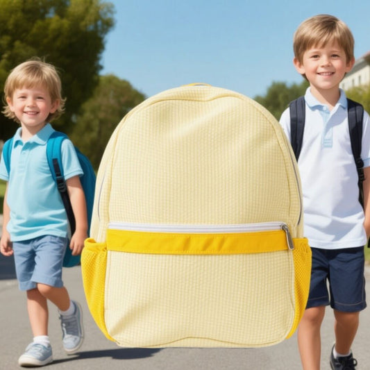 25Pcs Free Shipping Kid Preschool Backpack Yellow Seersucker Backpacks Cute Toddler Bookbag For Kids