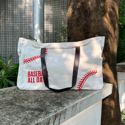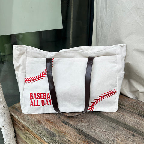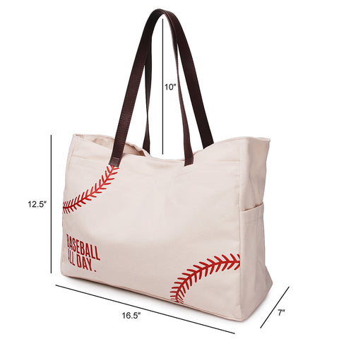 25Pcs Embroidery Softball Baseball Tote Women Large Oversize Baseball Bag Tote Canvas Bag