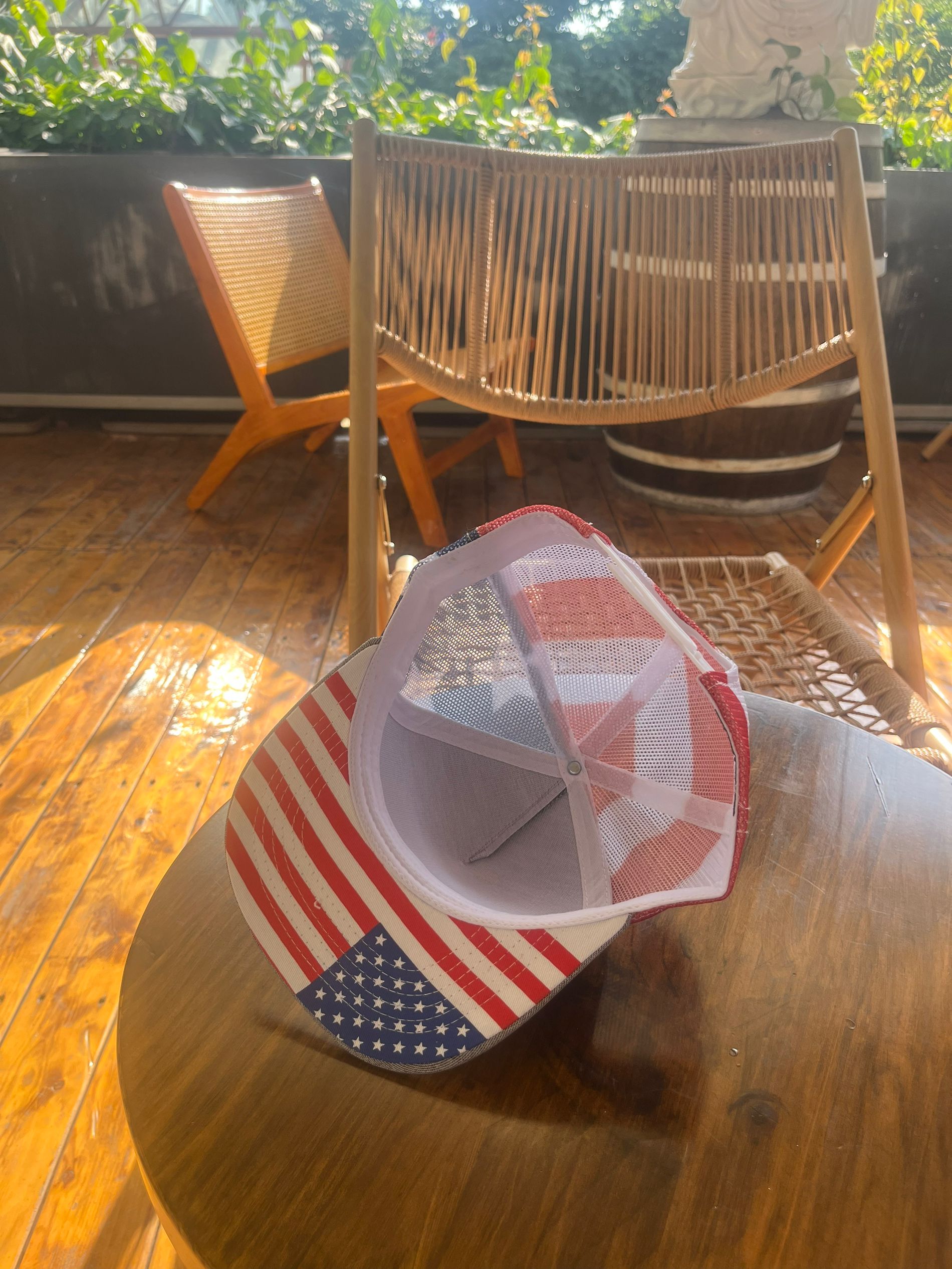25Pcs Free Shipping 6 Panel Blanks Trucker Hats Snapback Gray With Flag Mesh Baseball Cap