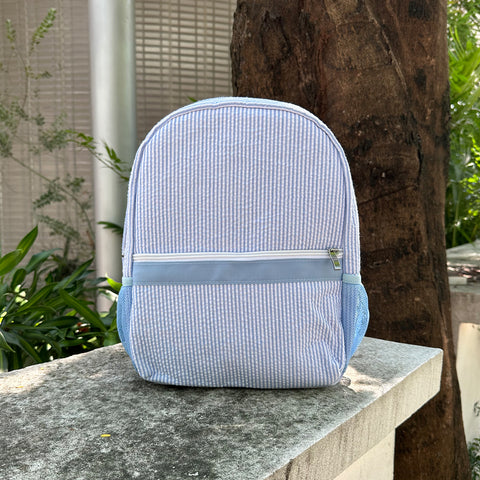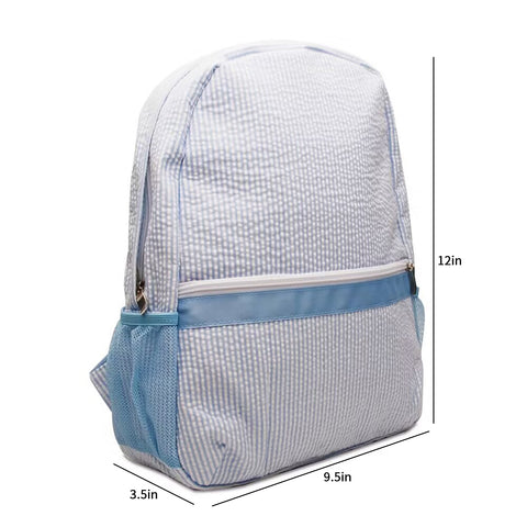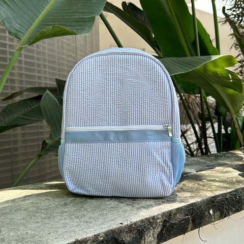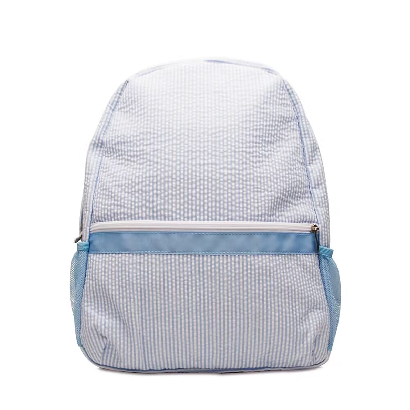 Our seersucker backpacks are very versatile. They are great toddler size school backpacks, diaper bags, overnight bags and great for car trips to pack toys and snacks in.
