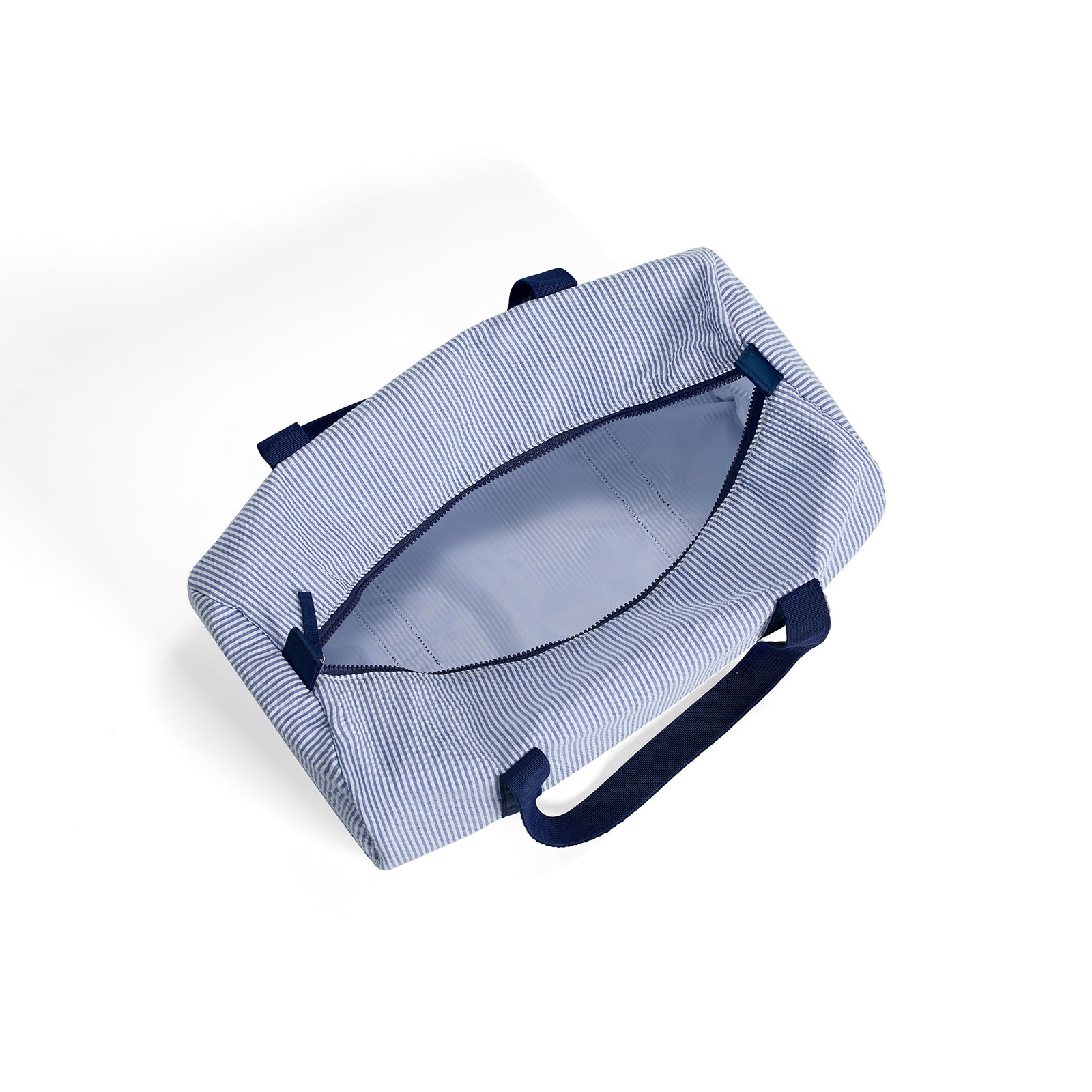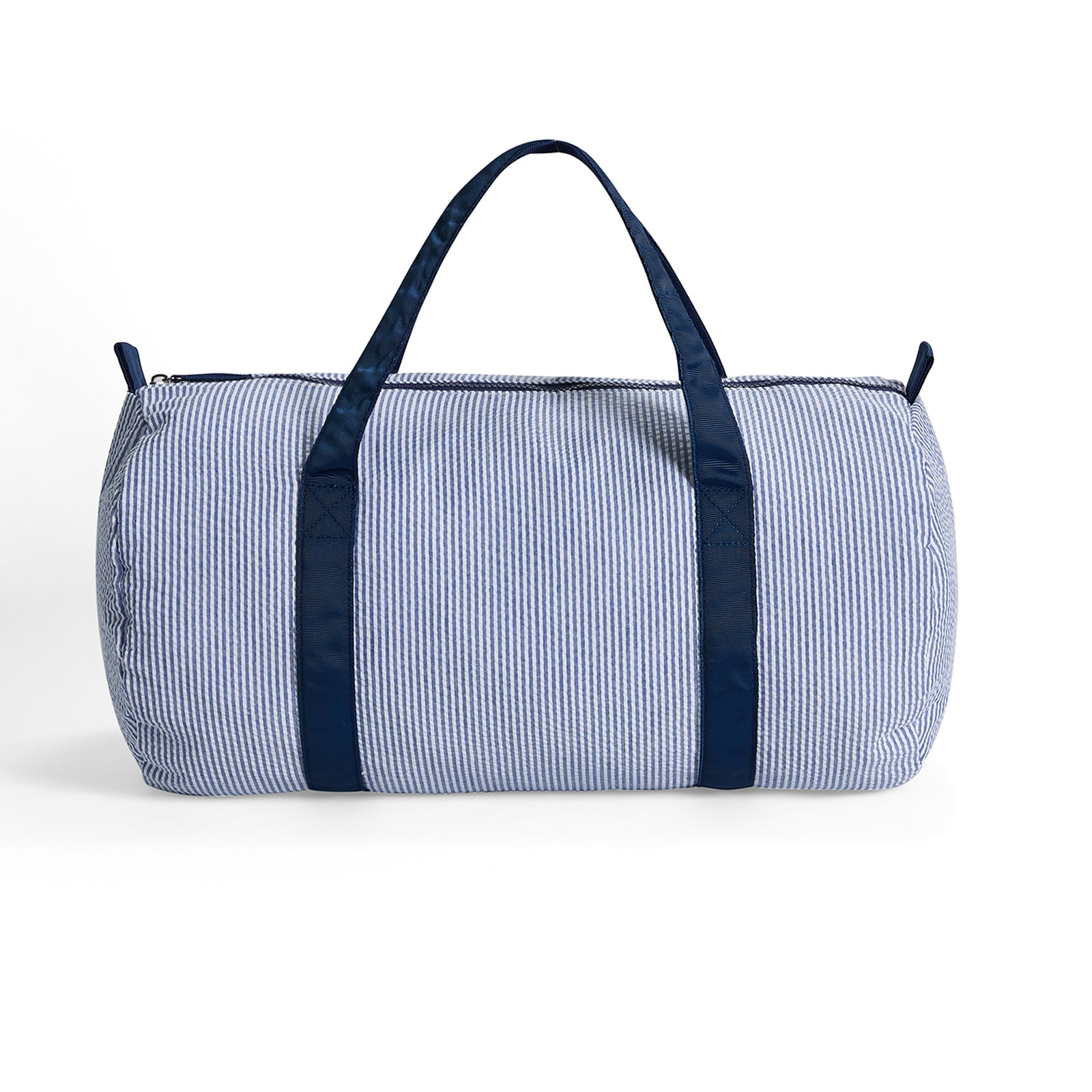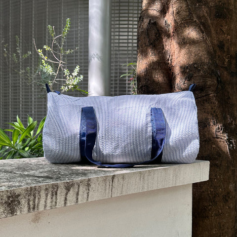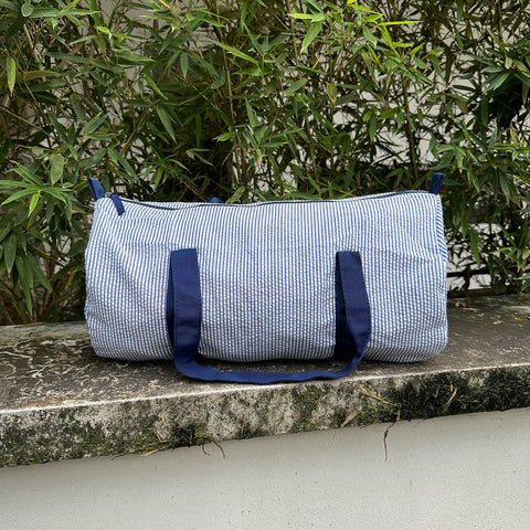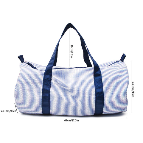 Upgrade your child's travel style with this kid seersucker travel bag - the perfect blend of charm and convenience! This kid seersucker travel bags are to make travel and outings with your little one a breeze. Made from high-quality seersucker fabric, these duffle bags are both stylish and functional.