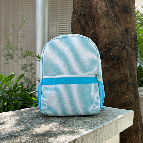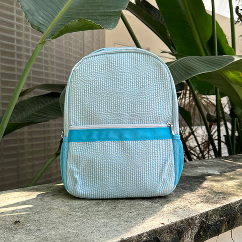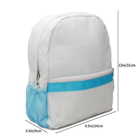 Our seersucker backpacks are very versatile. They are great toddler size school backpacks, diaper bags, overnight bags and great for car trips to pack toys and snacks in.