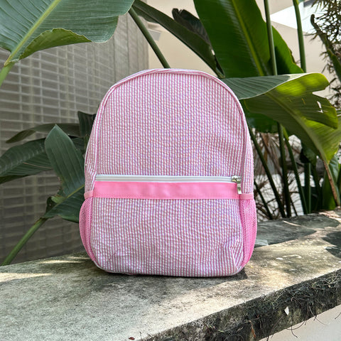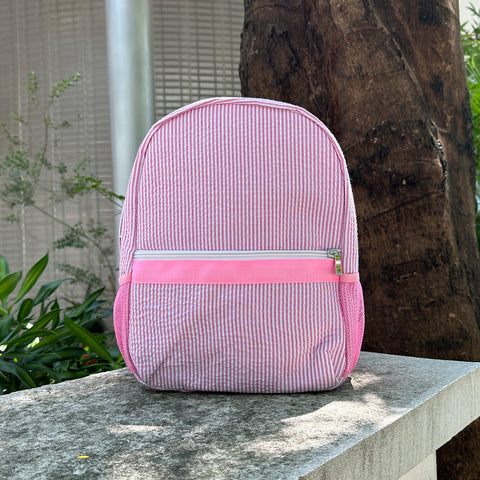 Our seersucker backpacks are very versatile. They are great toddler size school backpacks, diaper bags, overnight bags and great for car trips to pack toys and snacks in.
