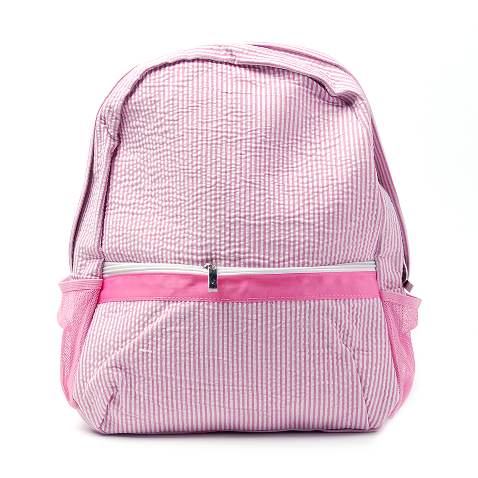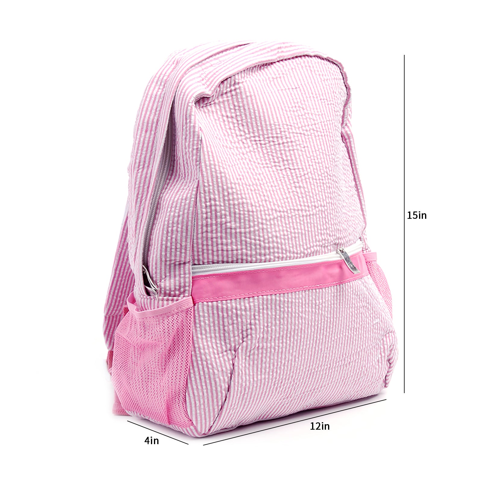 Our seersucker backpacks are very versatile. They are great full size school backpacks, diaper bags, overnight bags and great for car trips to pack toys and snacks in.