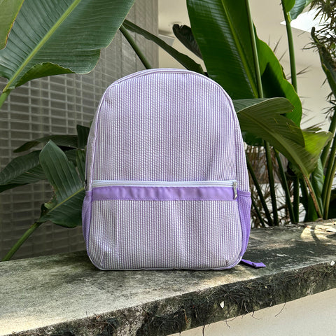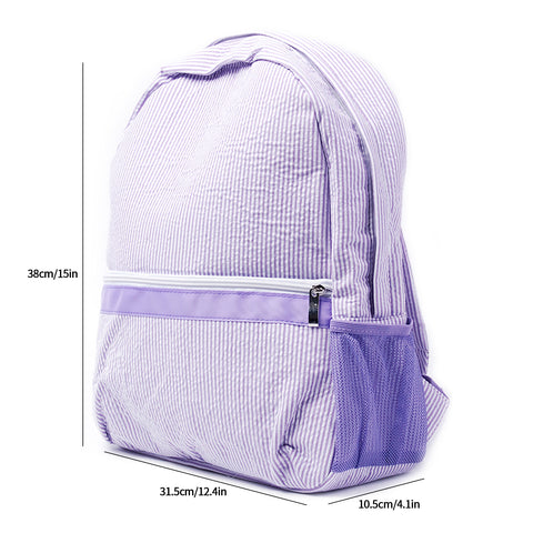 Our seersucker backpacks are very versatile. They are great full size school backpacks, diaper bags, overnight bags and great for car trips to pack toys and snacks in.