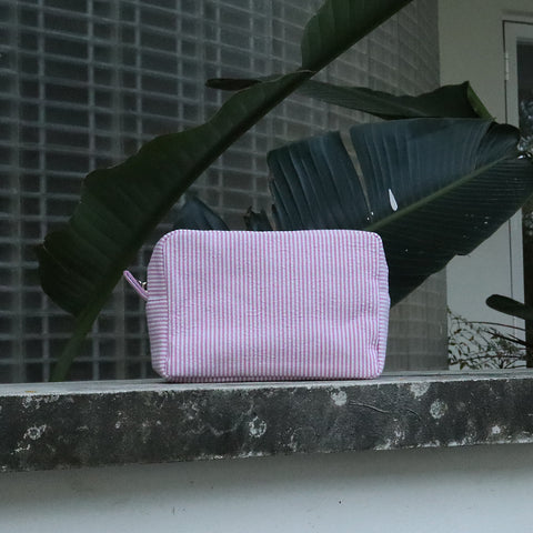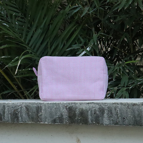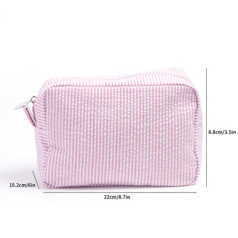25Pcs Seersucker Cosmetic Bag Pink Cotton Rectangle Makeup Bag Travel Toiletry Bag