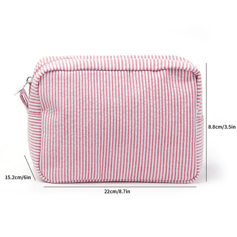 25Pcs Seersucker Cosmetic Bag Red Cotton Rectangle Makeup Bag Travel Toiletry Bag